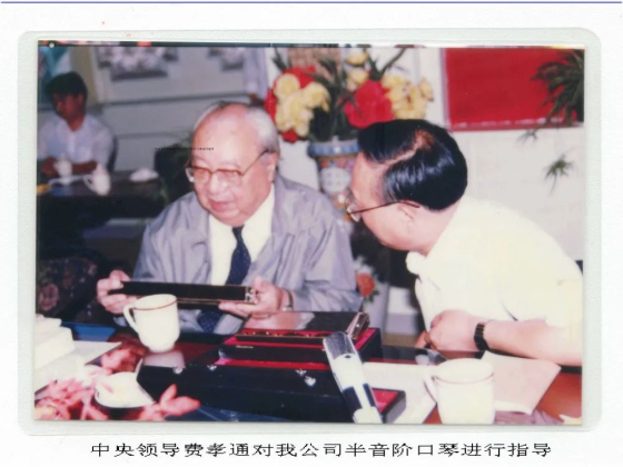 1995年5月,原中央政協委員費孝通來我公司視察,即興演奏口琴并題詞