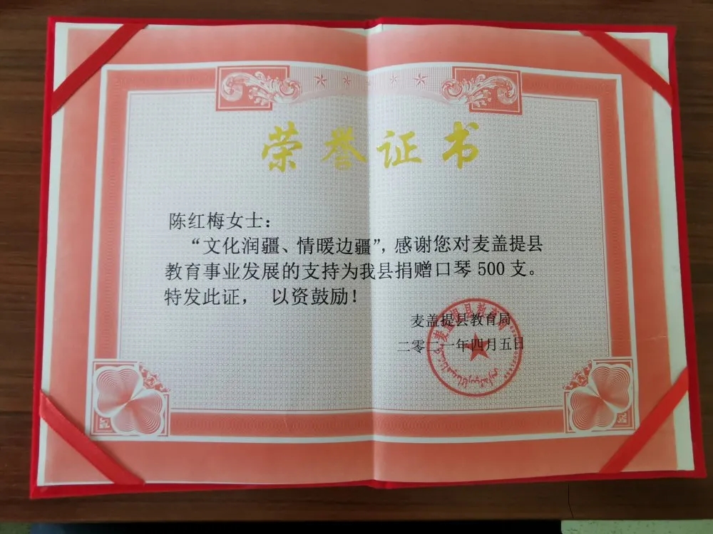 人們常說“社會多一份關(guān)愛,孩子就多一份信心,我們的未來就多一份希望”。新疆位于我國西部邊陲,天鵝樂器非常關(guān)心新疆、特別是南疆的教育事業(yè)的發(fā)展,現(xiàn)委托山東援疆劉洋老師向麥蓋提縣教育局捐贈口琴500把,用于音樂課堂或社團教學(xué)。