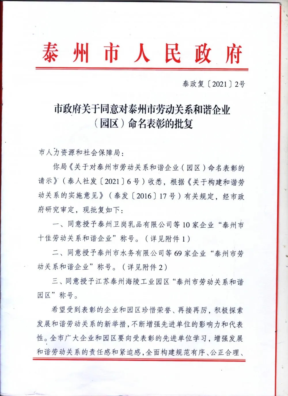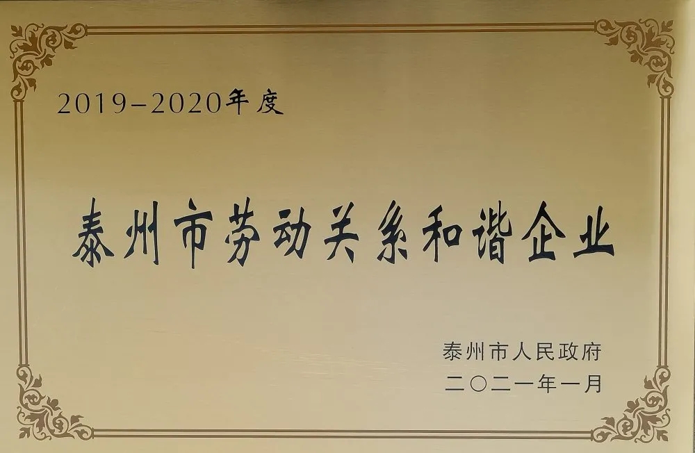 天鵝樂(lè)器被泰州市人民政府評(píng)為2019-2020年度“泰州市勞動(dòng)關(guān)系和諧企業(yè)”。