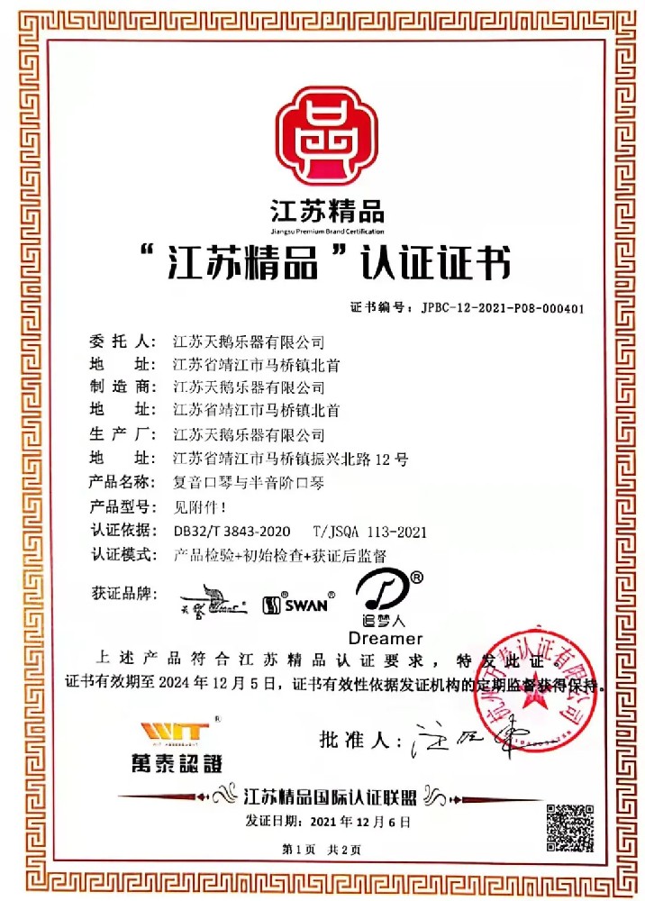 近日,江蘇天鵝樂器有限公司通過了2021年“江蘇精品”的認證,預示著企業(yè)朝著精品行業(yè)邁進了一大步。